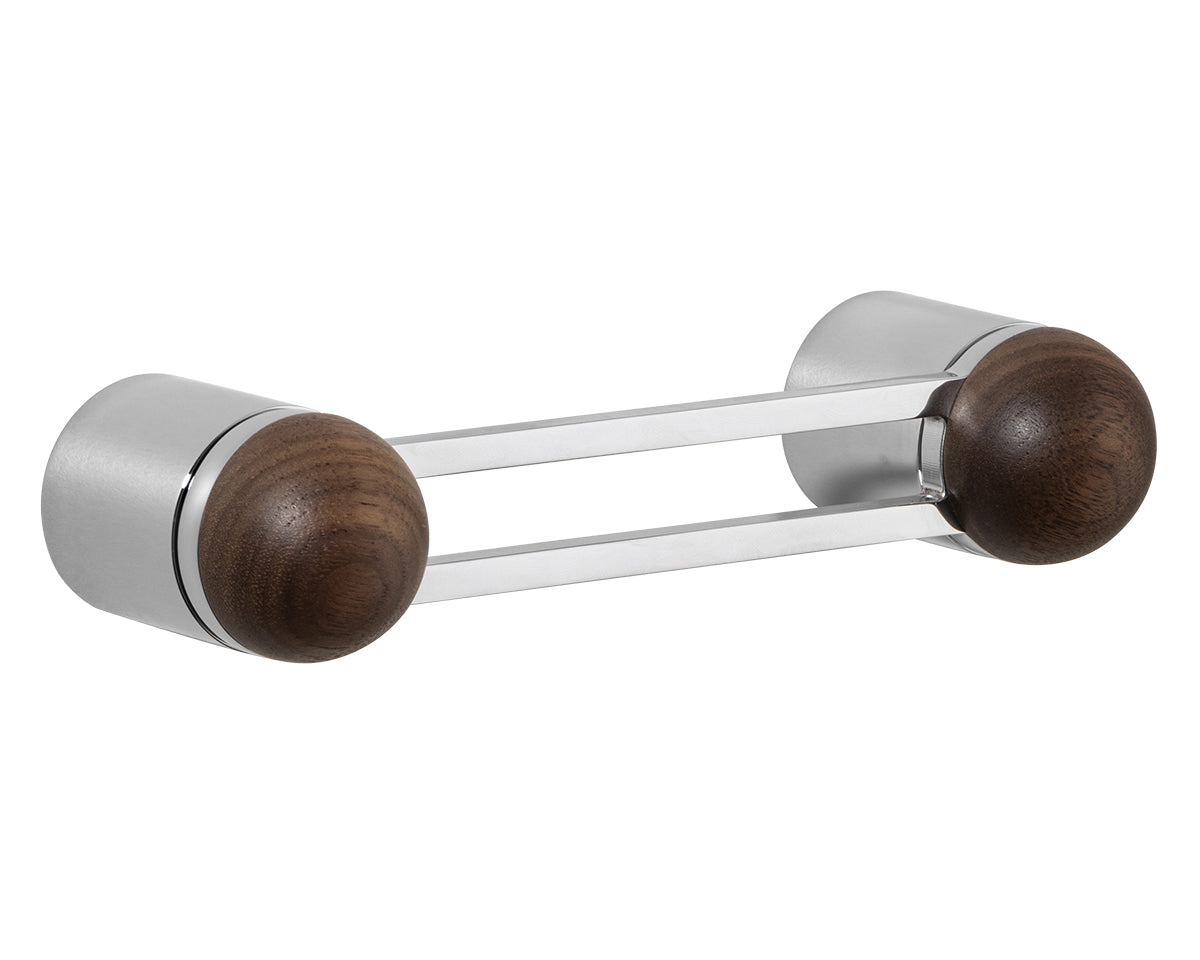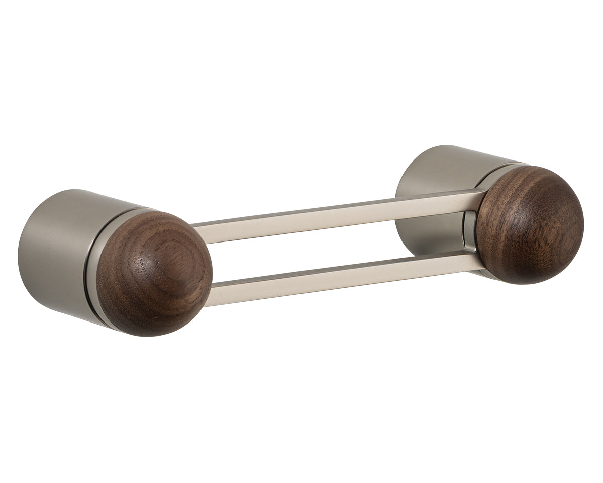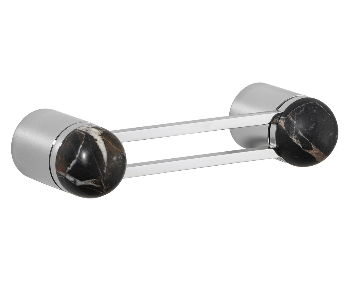 The Hemispheres Pull is designed by the New York interiors firm Civilian, for the Australian premium hardware company Bankston. A versatile pull for drawers, cabinets, furniture, and doors — that can be mounted vertically or horizontally — it features a two-pillar base, a cut-out handle, and a sleek dome top. It's available in a choice of 3 base finishes (polished chrome, bone powdercoat, or satin nickel) and 5 knob materials (Portoro gold marble, solid walnut, polished chrome, bone powdercoat, or satin nickel). Each pull is made to the highest quality standards. Also available as a 14-inch appliance pull.
