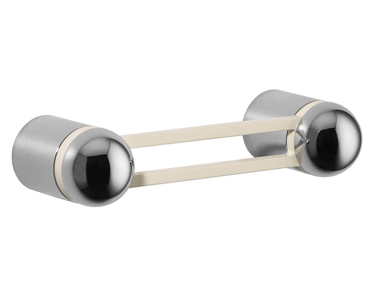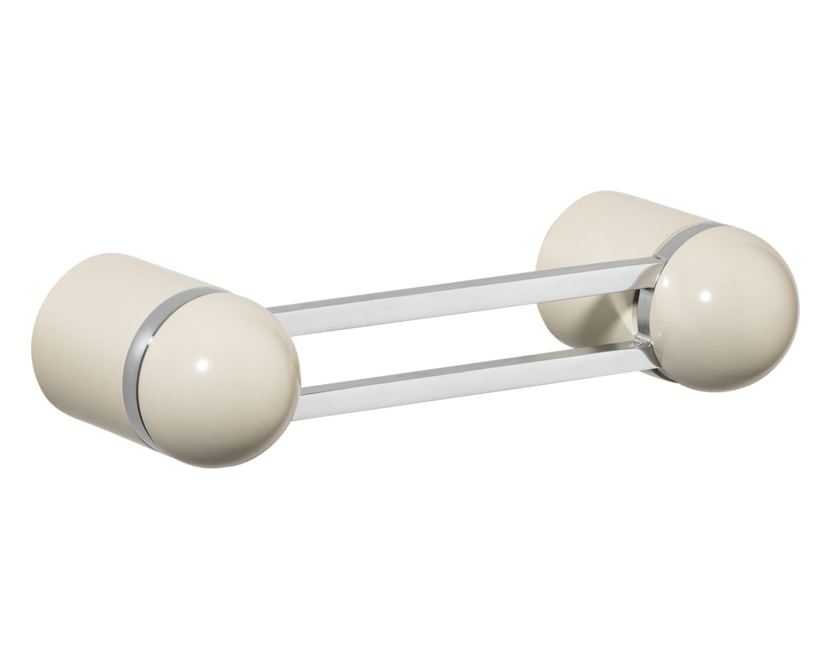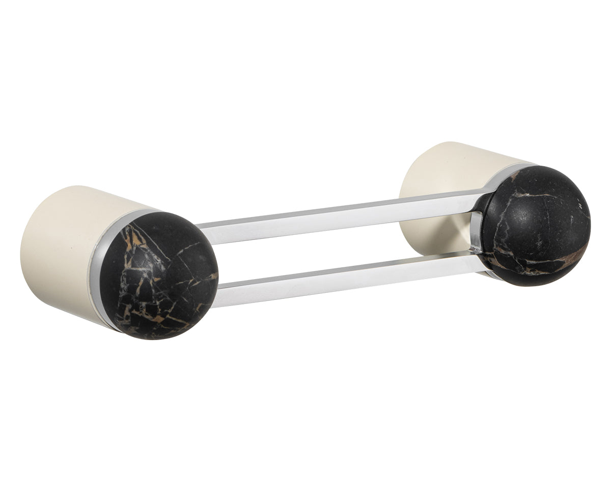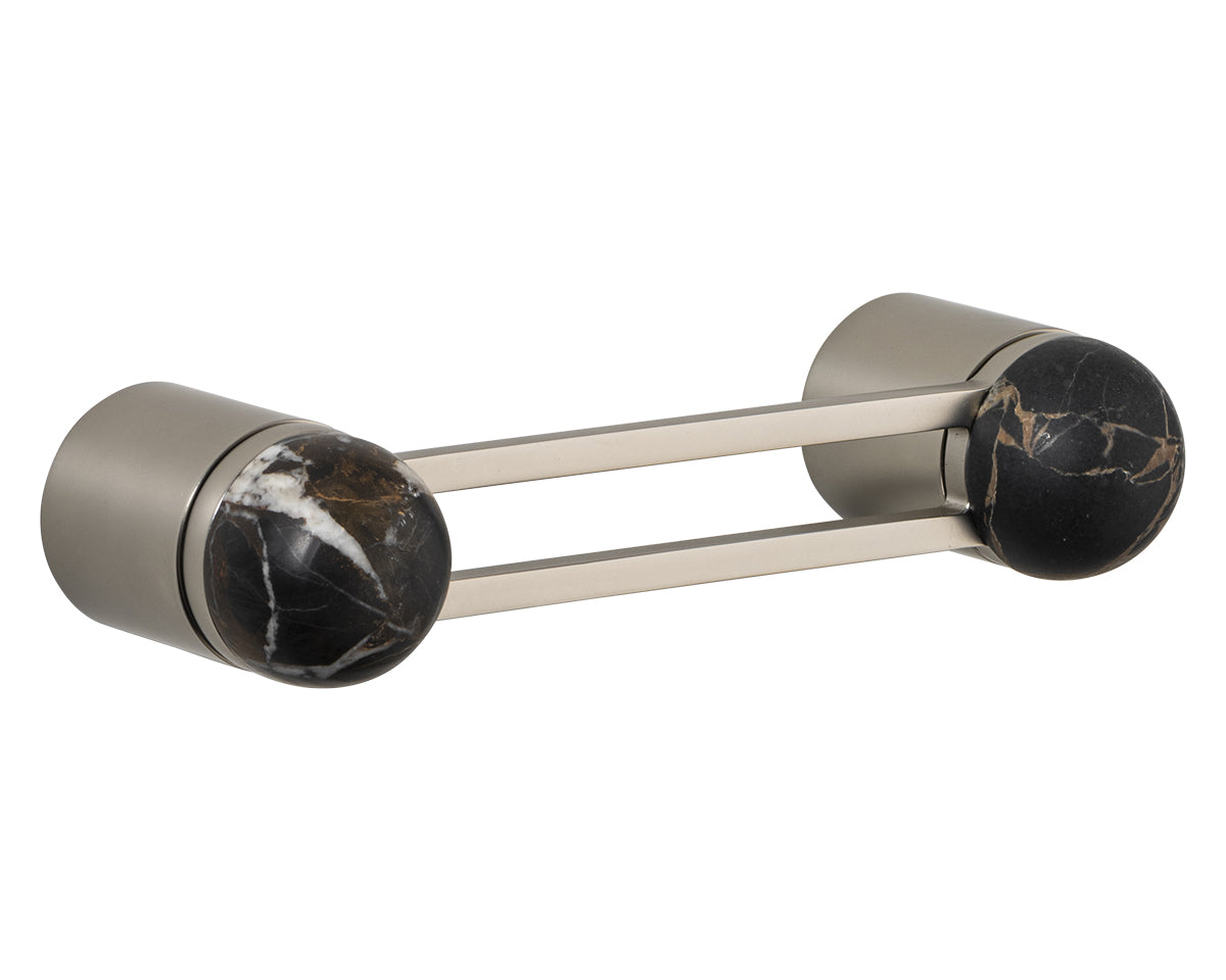 The Hemispheres Pull is designed by the New York interiors firm Civilian, for the Australian premium hardware company Bankston. A versatile pull for drawers, cabinets, furniture, and doors — that can be mounted vertically or horizontally — it features a two-pillar base, a cut-out handle, and a sleek dome top. It's available in a choice of 3 base finishes (polished chrome, bone powdercoat, or satin nickel) and 5 knob materials (Portoro gold marble, solid walnut, polished chrome, bone powdercoat, or satin nickel). Each pull is made to the highest quality standards. Also available as a 14-inch appliance pull.