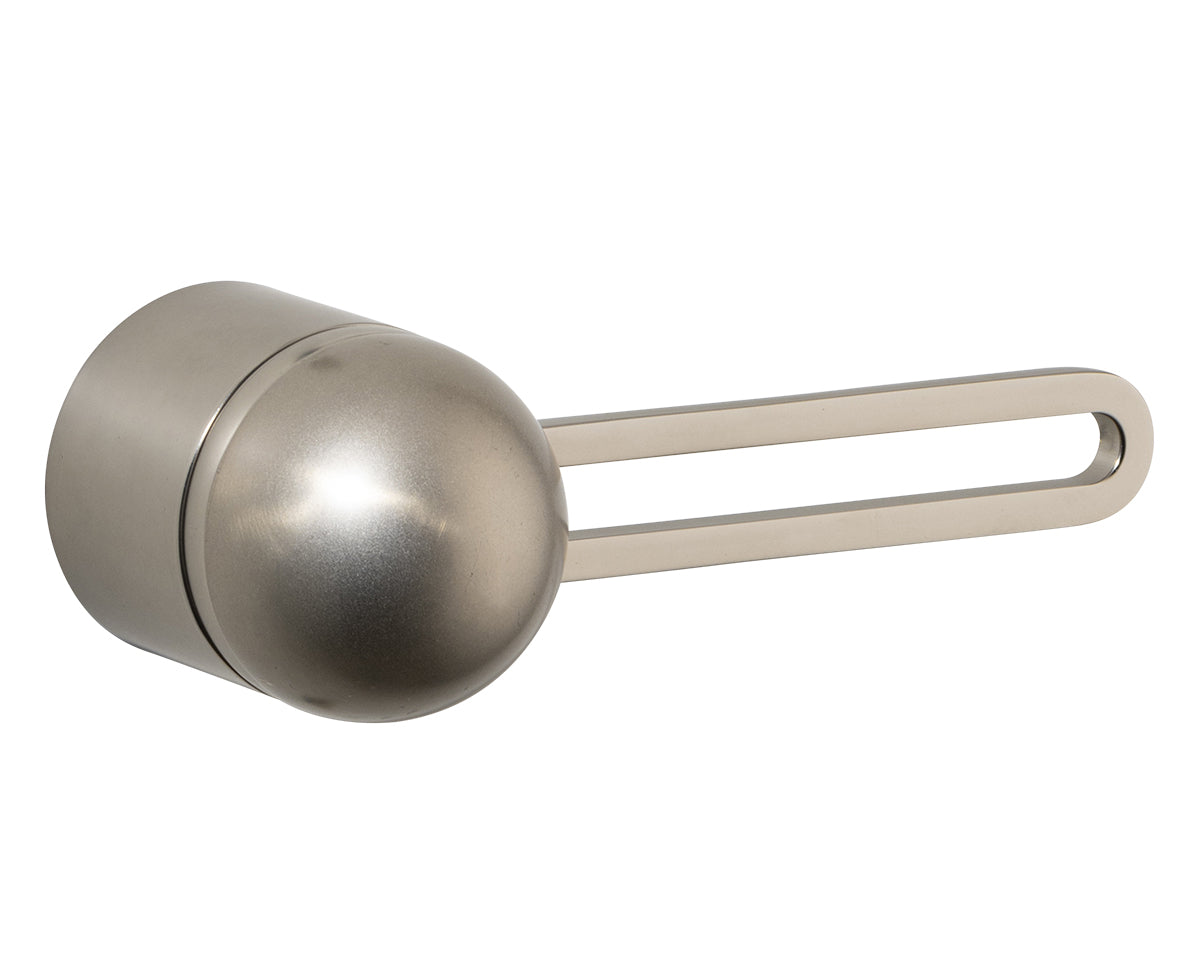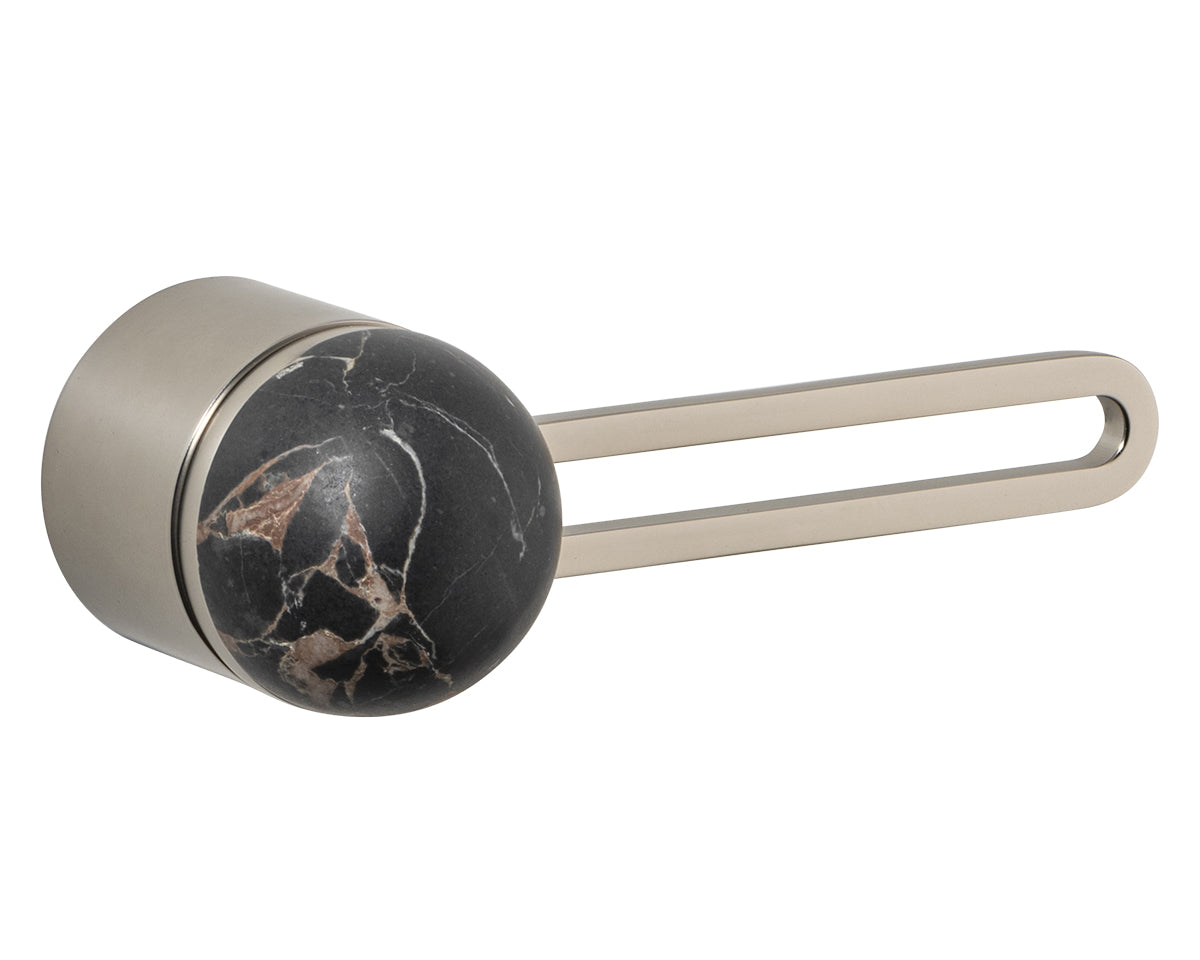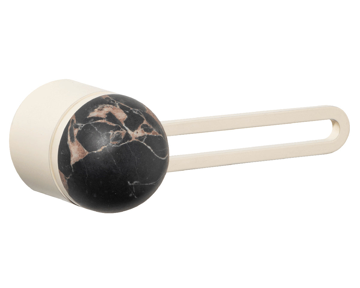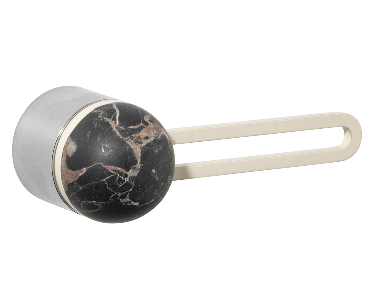 The Hemispheres Rose Door Lever is designed by the New York interiors firm Civilian, for the Australian premium hardware company Bankston. It's a latching fixture that features a rose, a contemporary track-shaped lever, and a sleek dome top. It's available in a choice of 3 base and lever finishes (polished chrome, bone powdercoat, or satin nickel) and 5 knob materials (Portoro gold marble, solid walnut, polished chrome, bone powdercoat, or satin nickel). Each set is made to the highest quality standards.
