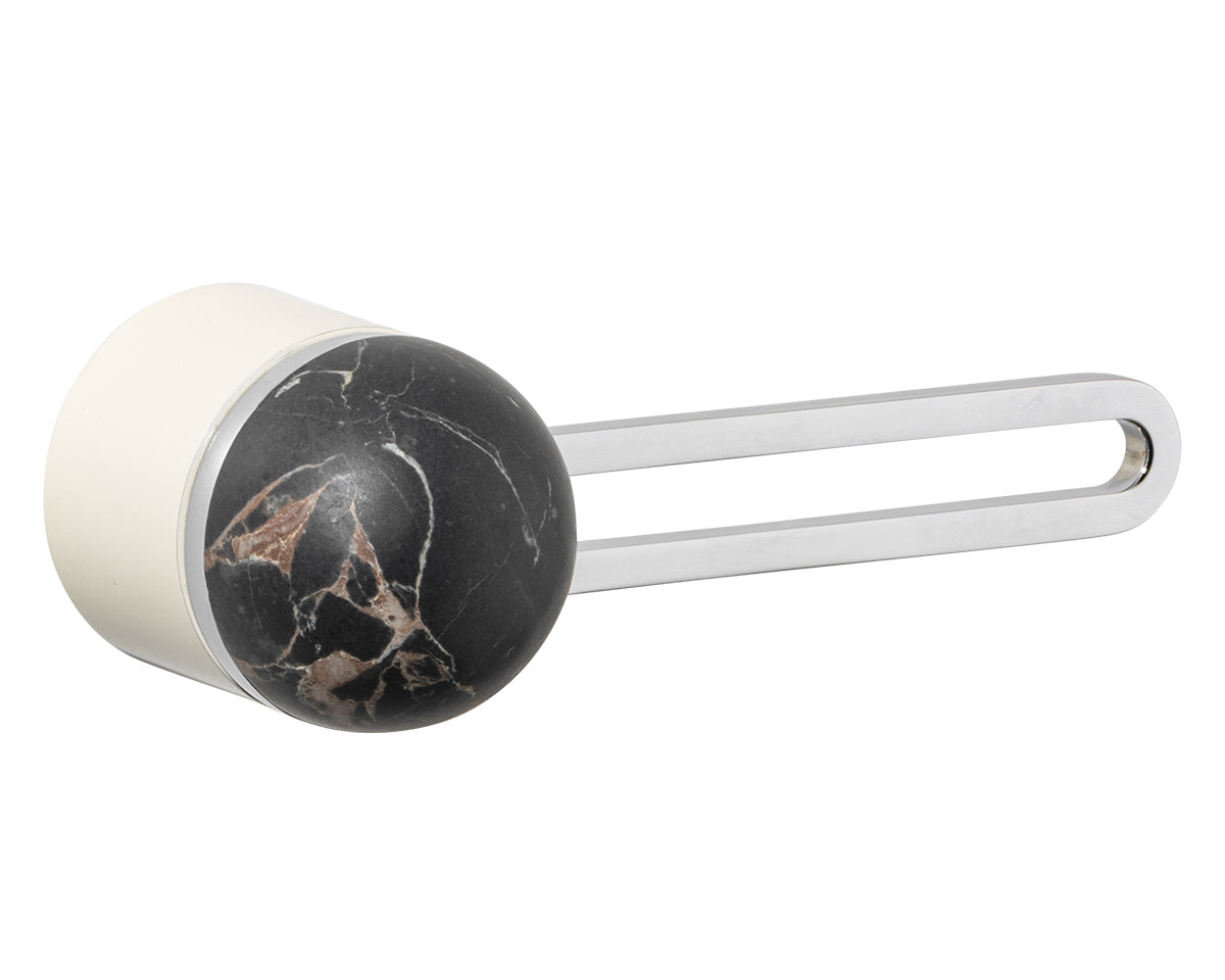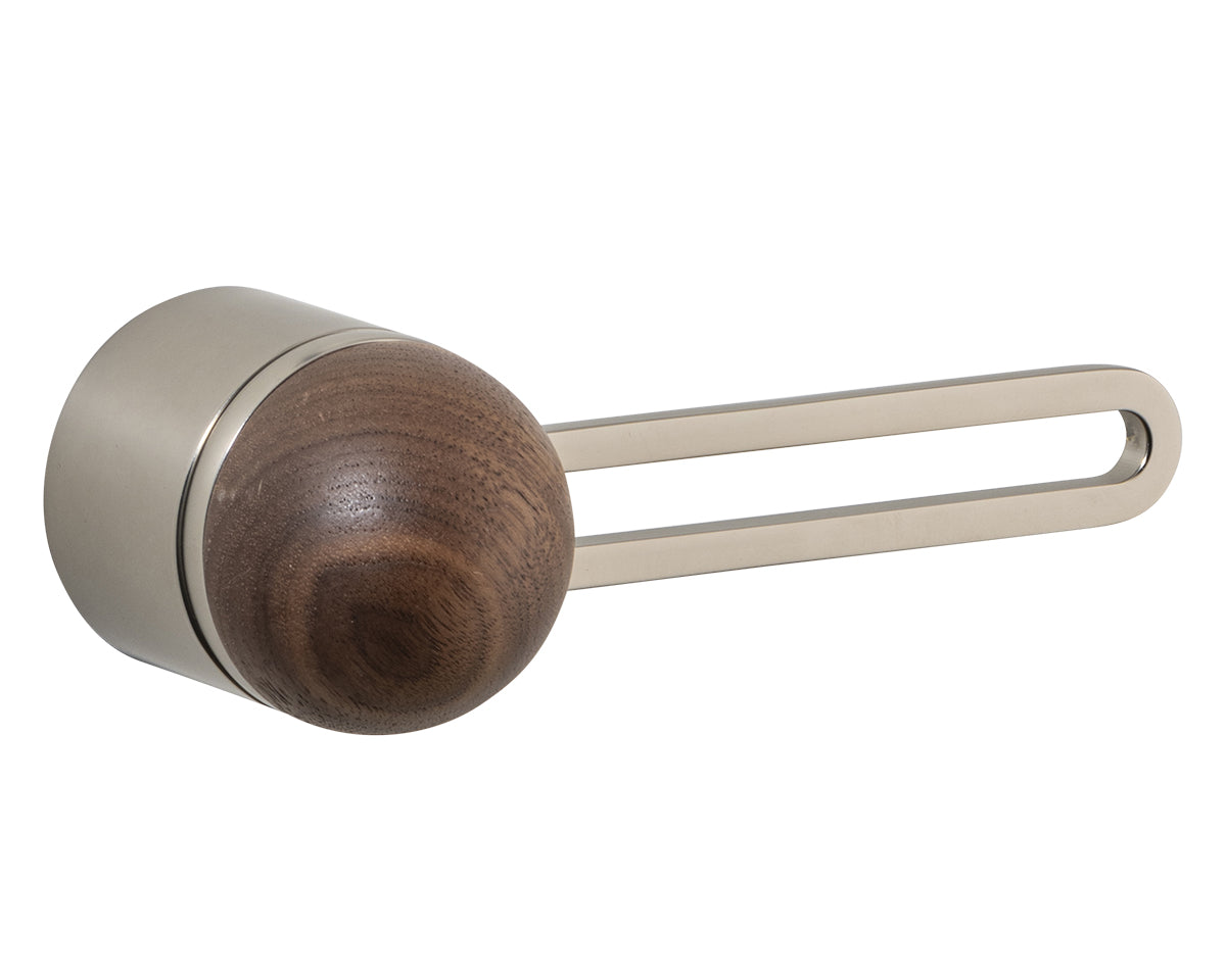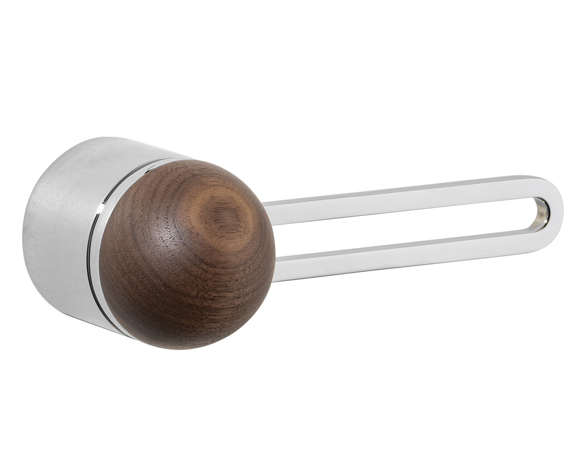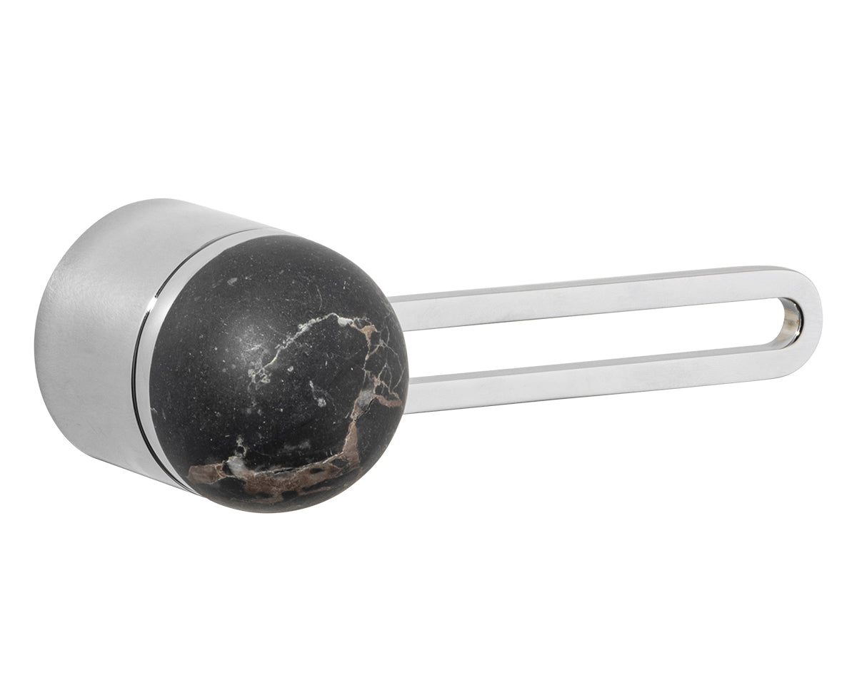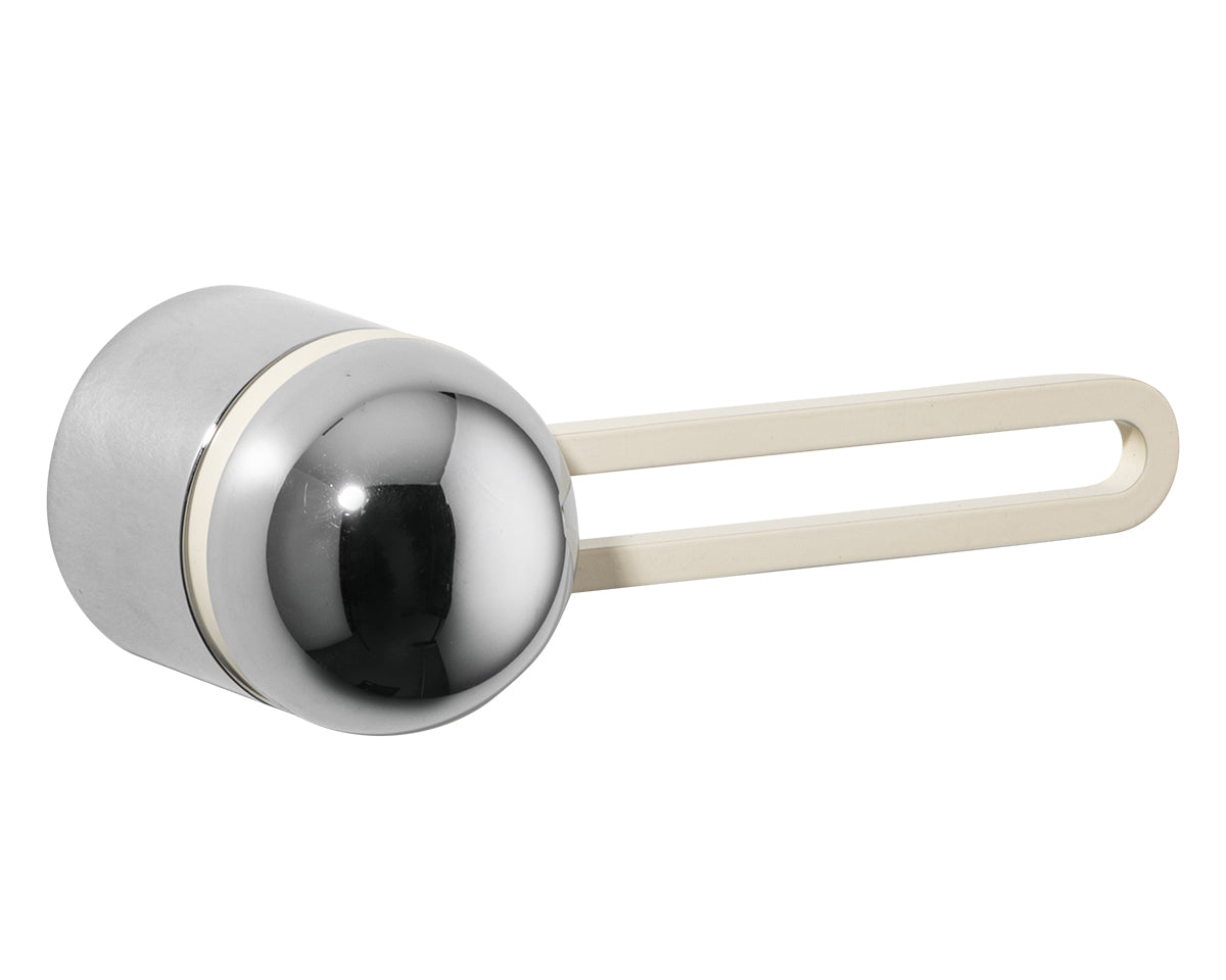 The Hemispheres Rose Door Lever is designed by the New York interiors firm Civilian, for the Australian premium hardware company Bankston. It's a latching fixture that features a rose, a contemporary track-shaped lever, and a sleek dome top. It's available in a choice of 3 base and lever finishes (polished chrome, bone powdercoat, or satin nickel) and 5 knob materials (Portoro gold marble, solid walnut, polished chrome, bone powdercoat, or satin nickel). Each set is made to the highest quality standards.