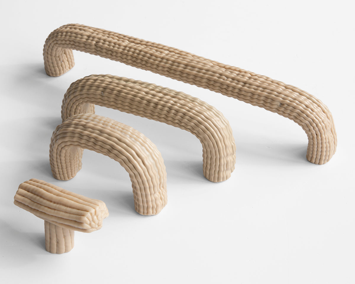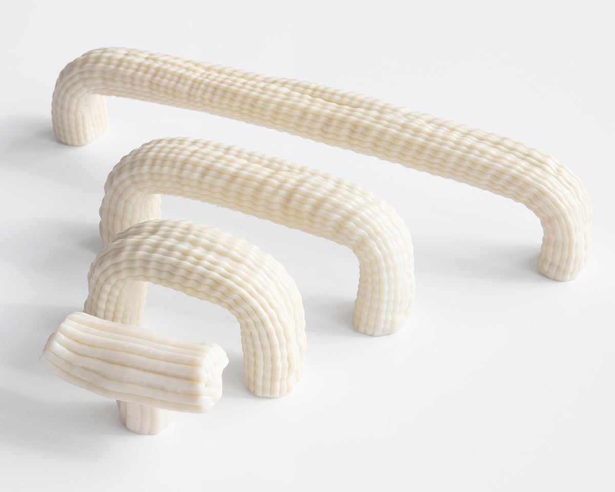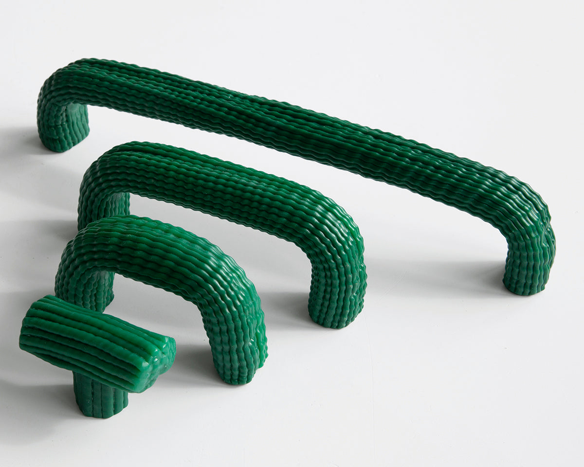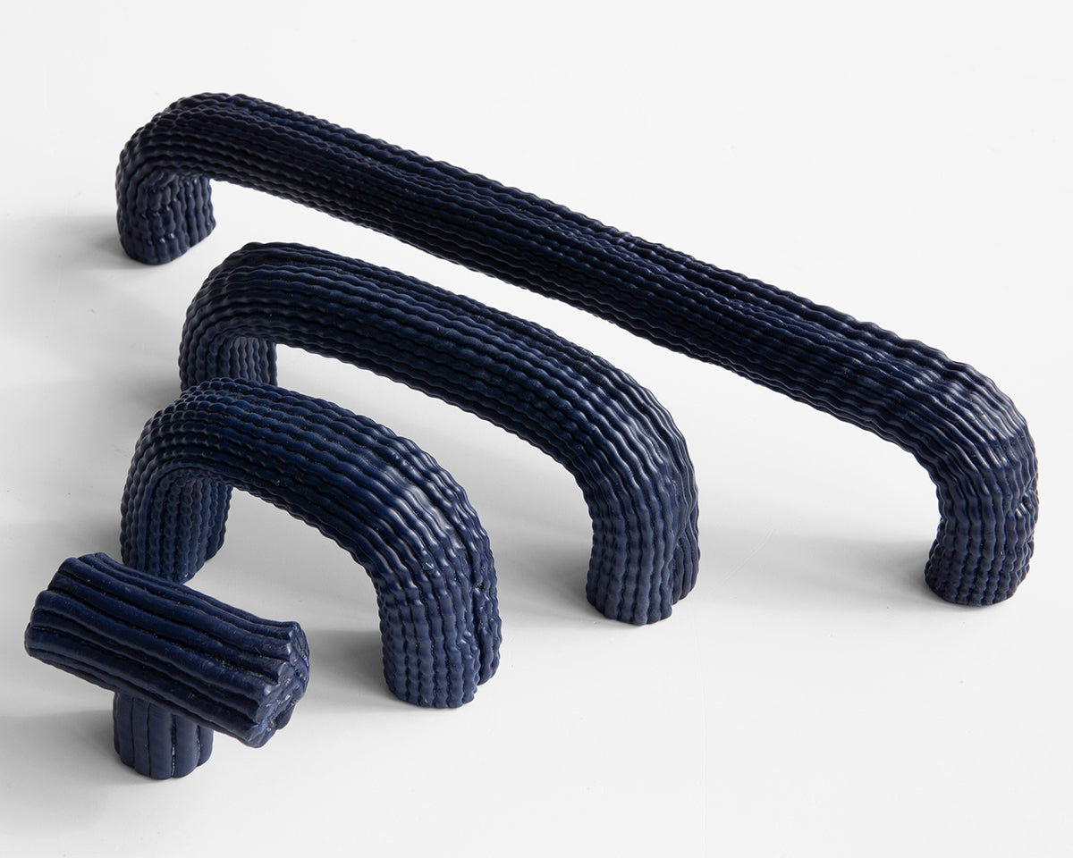 For the past decade, London designer James Shaw has been working with waste plastics using self-built extrusion machines. These allow for a hands-on, improvisational way of working with a very industrial and problematic material. The intent is to take a material typically considered disposable and to make beautiful things of lasting value from it. The Large D Handle is suitable as an appliance handle or a very long door / drawer pull.