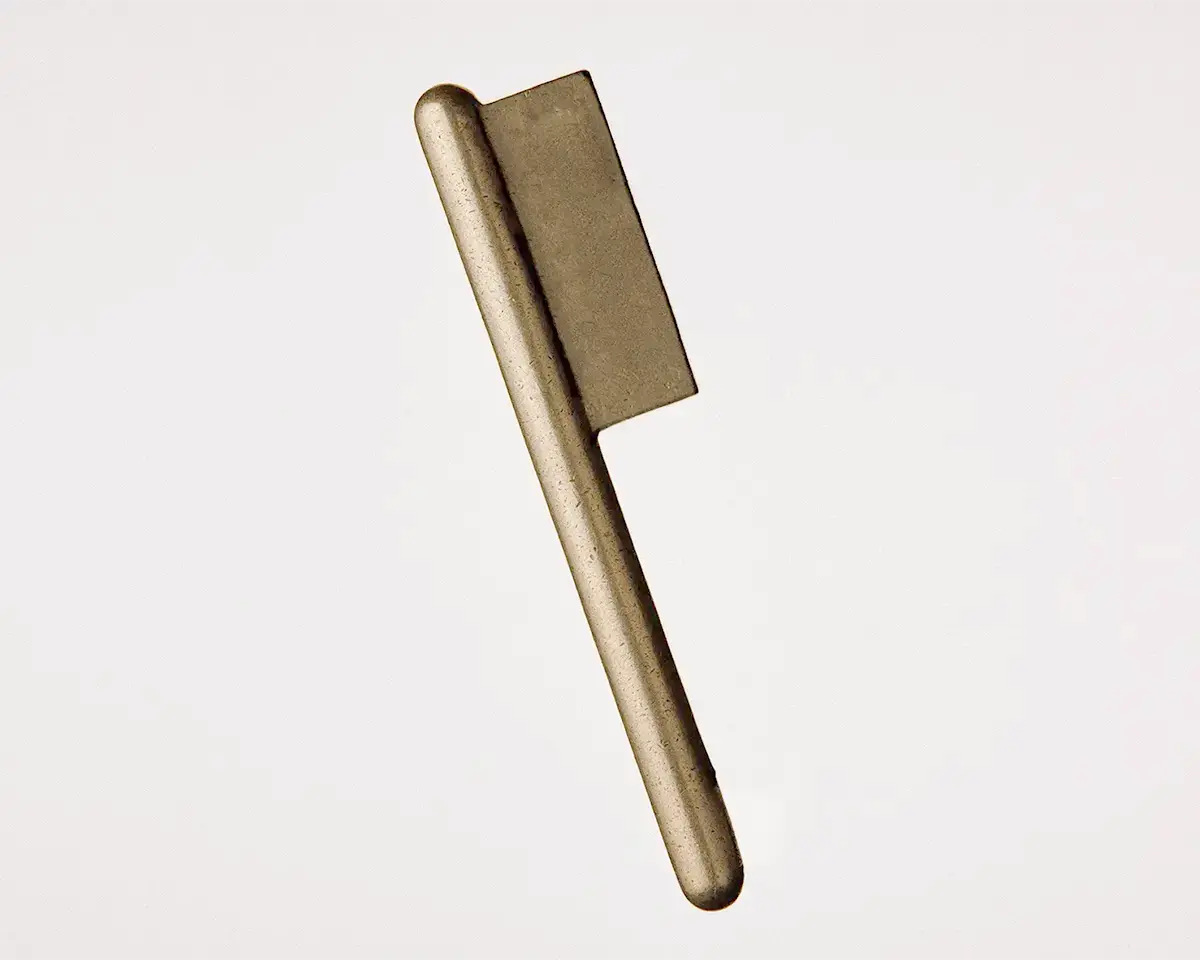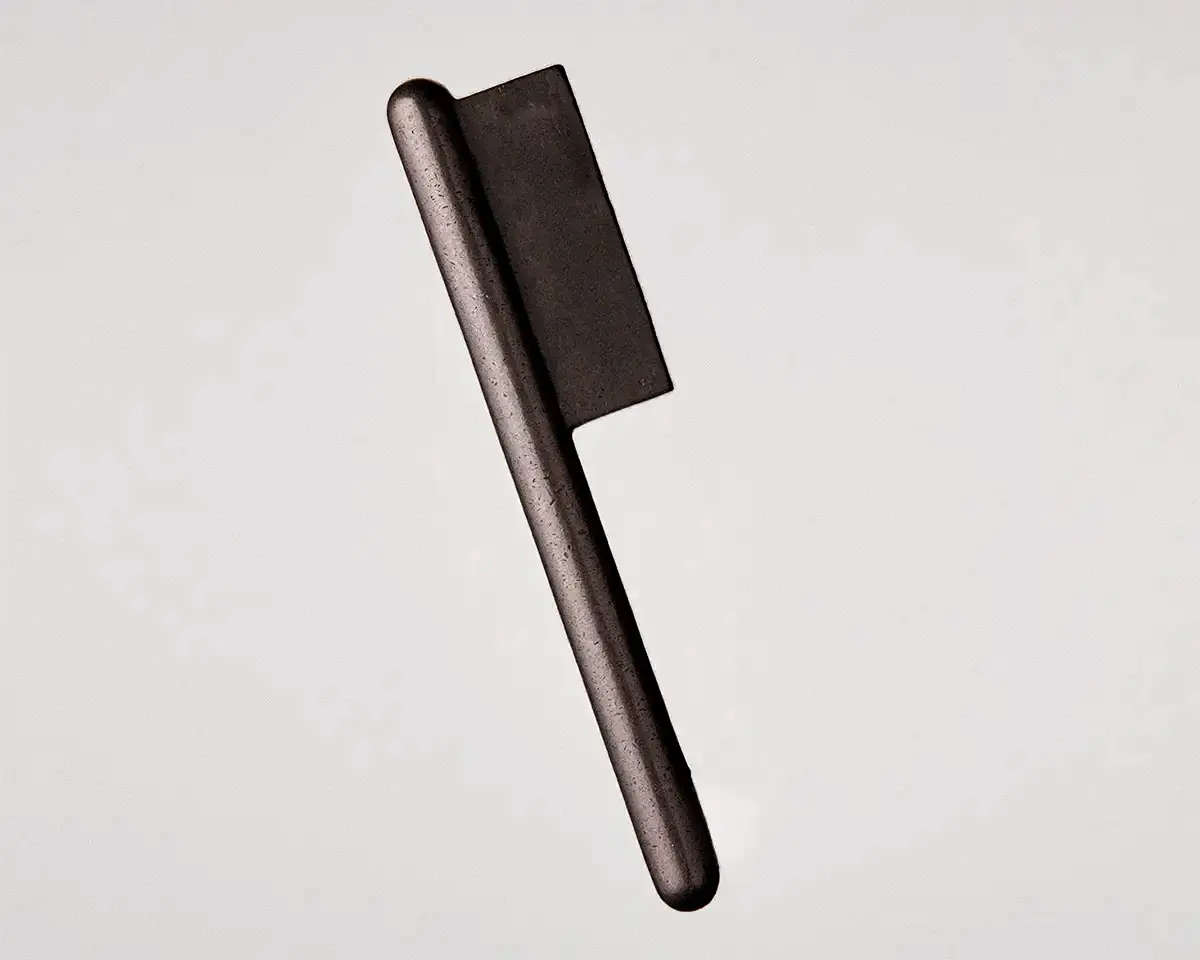 NOTE: Each handle is sand-cast and rumble-finished; because of small-batch manufacturing, slight variations will be visible from one piece to another. These production marks may include slight pour ripples or surface pitting. The non-blackened versions will oxidize and darken over time to reveal a distinctive patina. If preferred, use a metal polish such as Brasso to restore brightness. Delivered with adjustable screws.