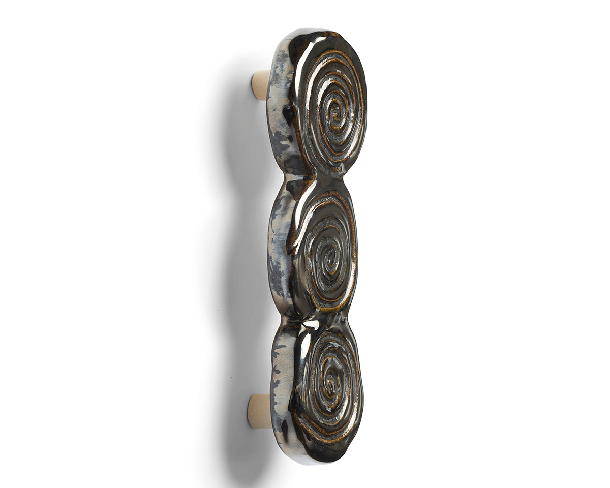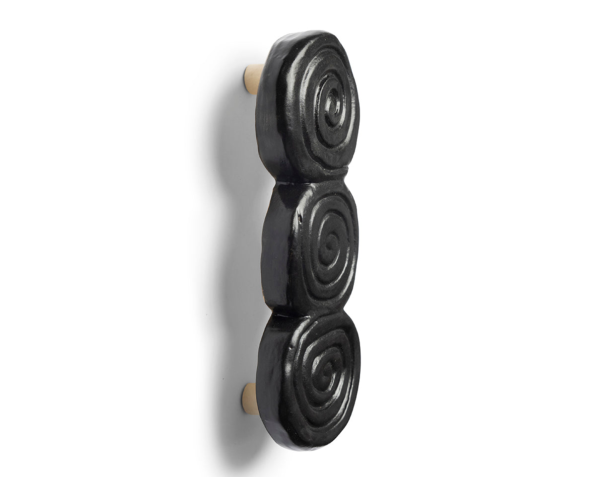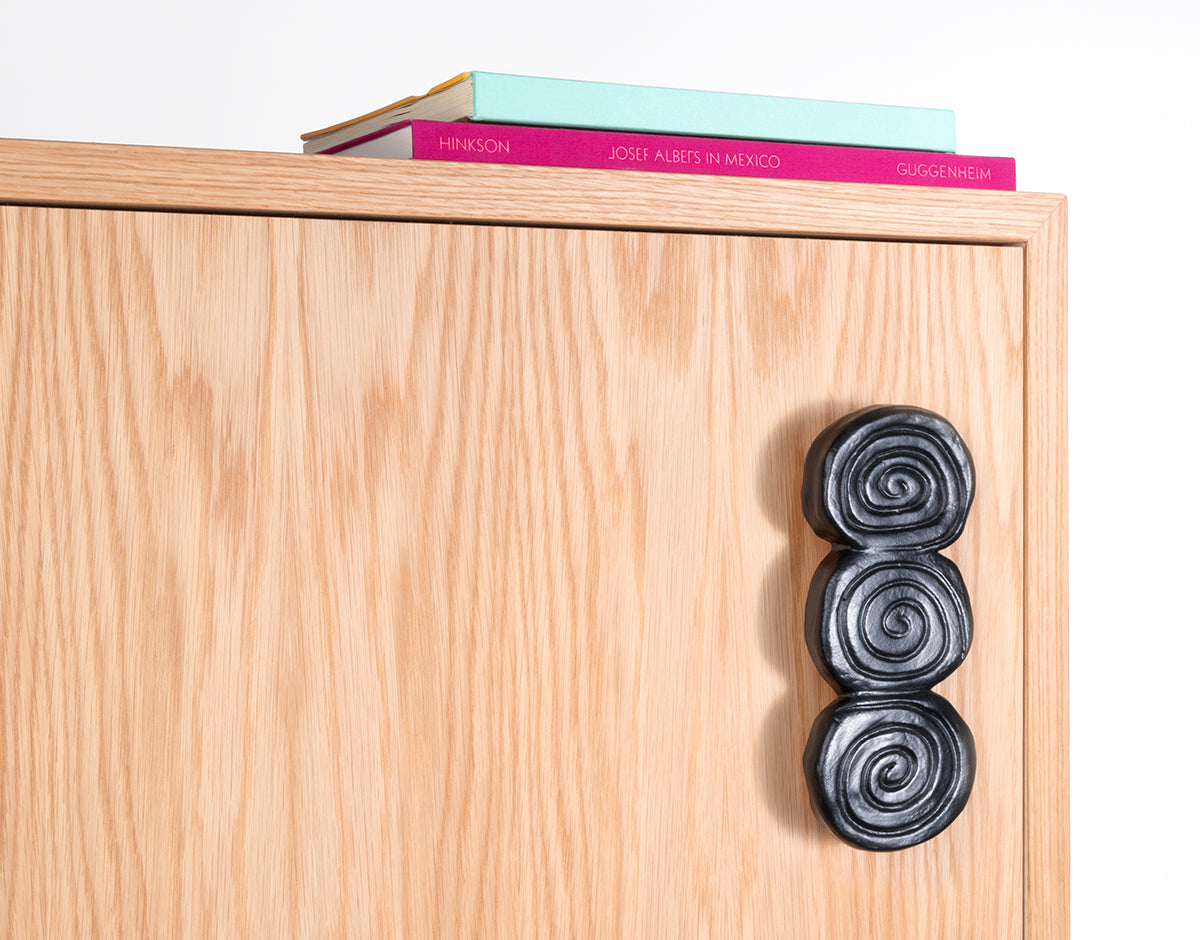 Clarissa Guzman of Platform Studio’s hardware is influenced by nostalgia for her childhood in Texas and Mexico, blended with formal references to Brutalism and religious relics. She makes each piece by hand in her Brooklyn studio in glazed stoneware. Each piece is individually shaped, trimmed, sanded, and painted, so each is slightly unique.