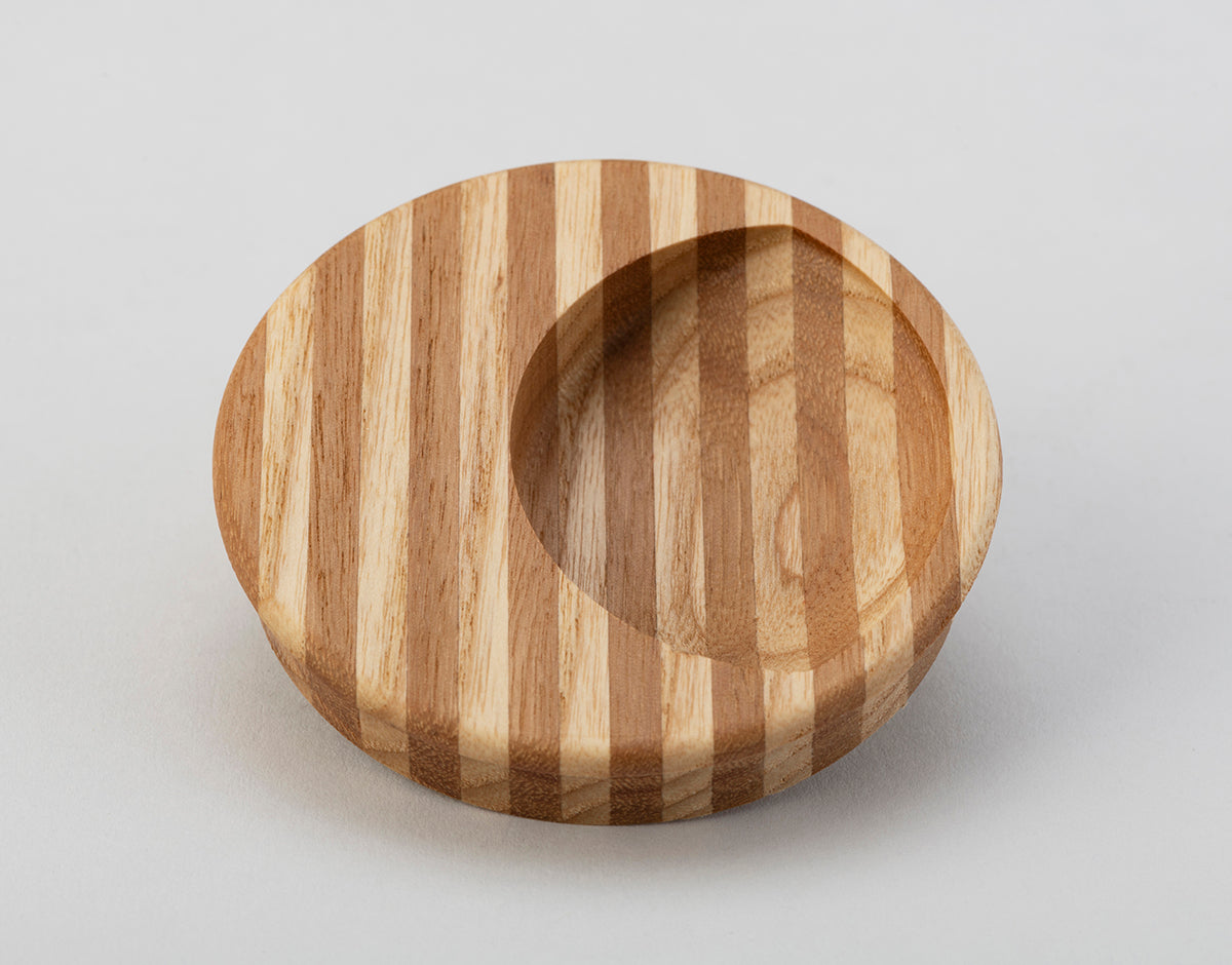 The Lunacy sliding door pull — by Australian interiors studio YSG for Bankston — is a circular pull inset with a crescent moon shape, enabling fingers to snugly grasp its internal concave edge. Perfectly suited to pocket doors, it’s offered in three different striped colorways, ranging from a subtle tone-on-tone to a bold aubergine and tangerine pairing — all superbly crafted from different combinations of FSC-certified wood species. These pulls are sold individually.