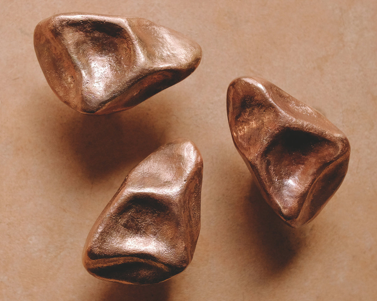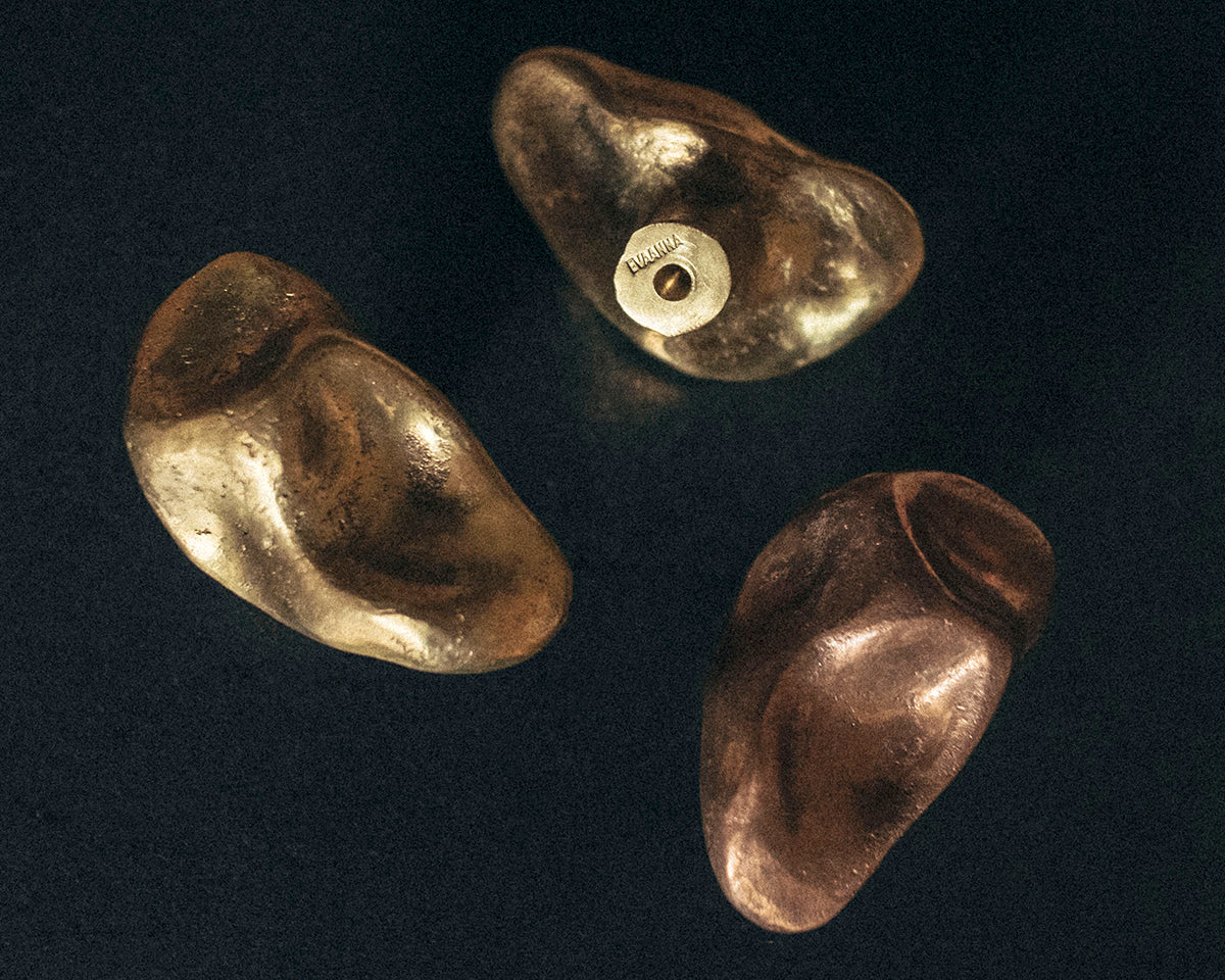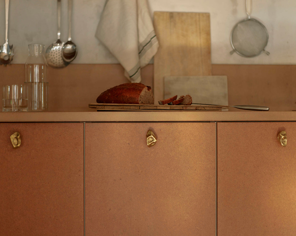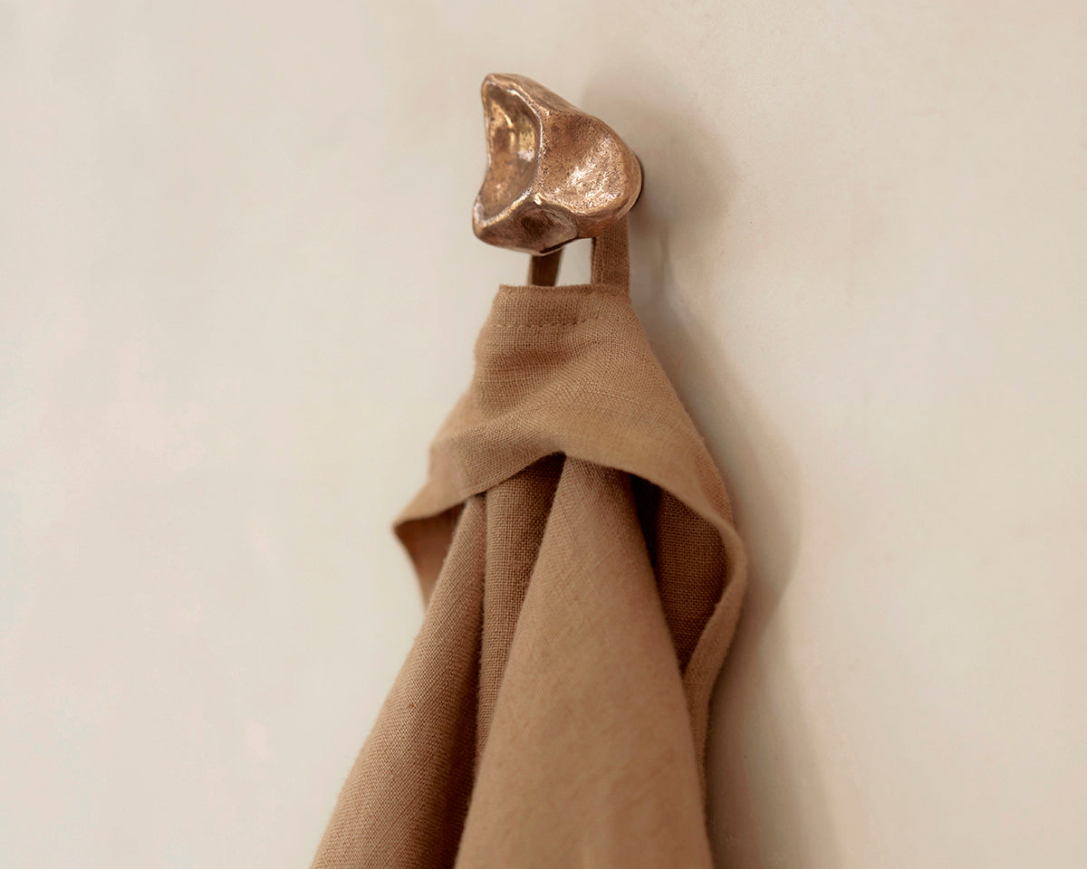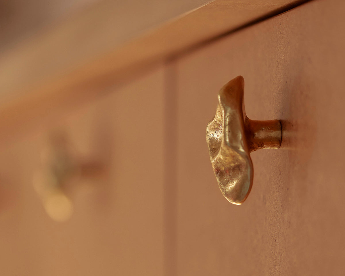 The Pinch hook/knob collection by Budapest studio Evaanna disrupts the clean lines of a modern space or furniture piece with an organic form that channels the aesthetic of mid-century sculptors like Henry Moore. Each of the collection's 6 shapes — 3 small, 3 large — has been hand-shaped in clay by architect and metalsmith Eva Ana Gulacsi, and cast by a family-run foundry in Budapest in either bronze or brass. Both materials will naturally darken and develop a patina over time. Pinch can be used either as a knob or a wall hook, and screws for both options are included with purchase.