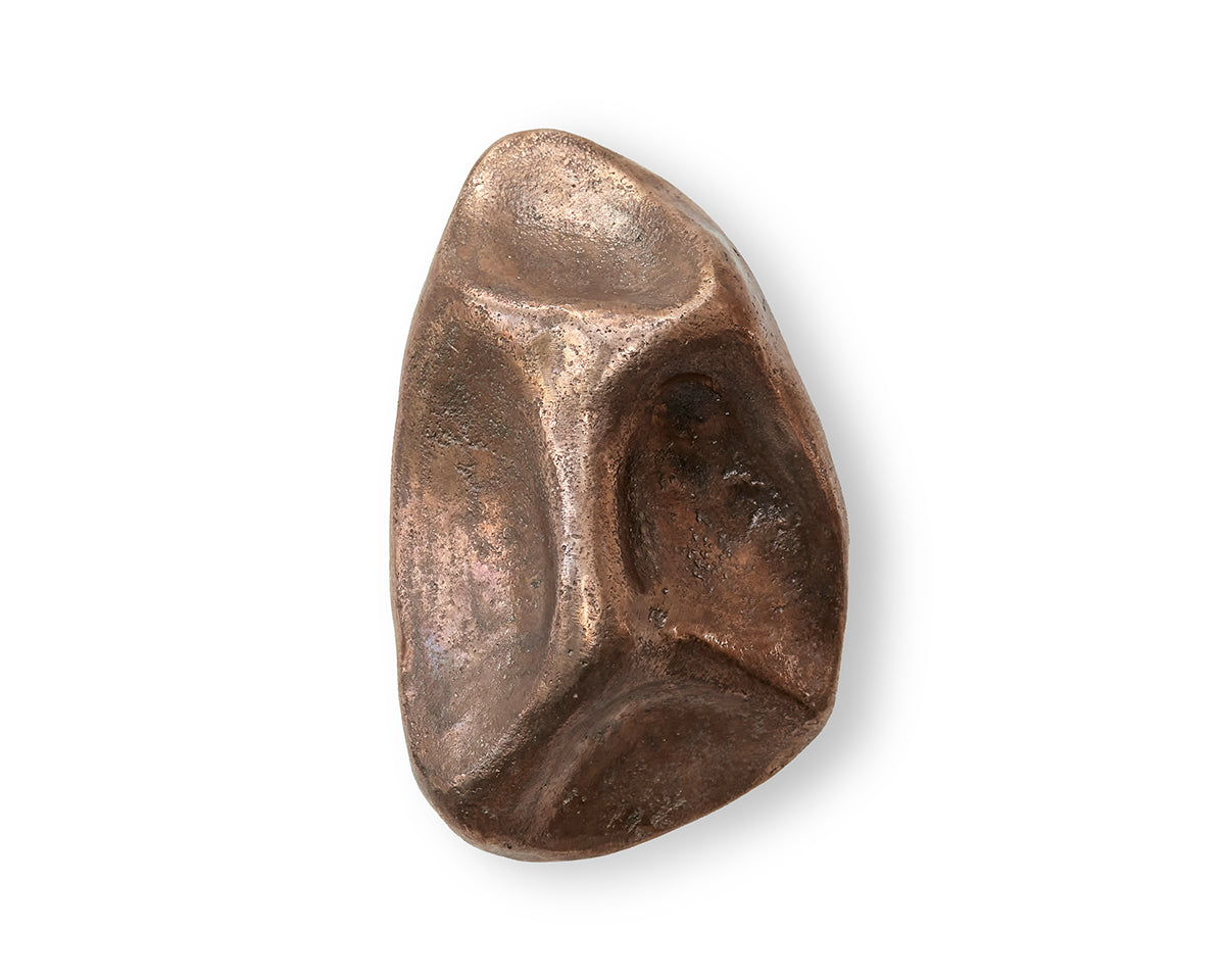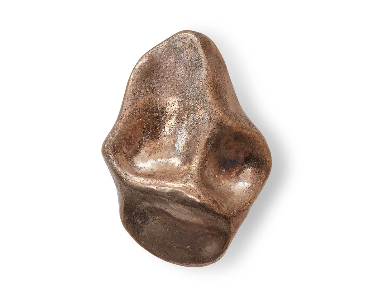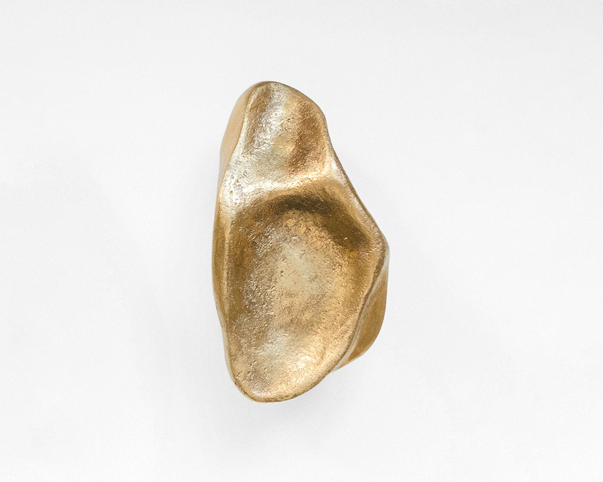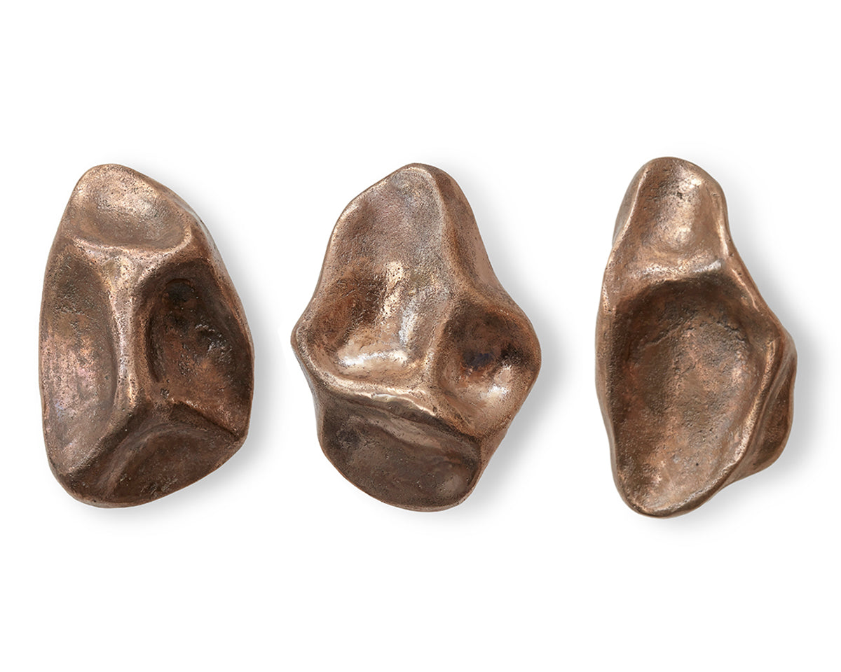 The Pinch hook/knob collection by Budapest studio Evaanna disrupts the clean lines of a modern space or furniture piece with an organic form that channels the aesthetic of mid-century sculptors like Henry Moore. Each of the collection's 6 shapes — 3 small, 3 large — has been hand-shaped in clay by architect and metalsmith Eva Ana Gulacsi, and cast by a family-run foundry in Budapest in either bronze or brass. Both materials will naturally darken and develop a patina over time. Pinch can be used either as a knob or a wall hook, and screws for both options are included with purchase.