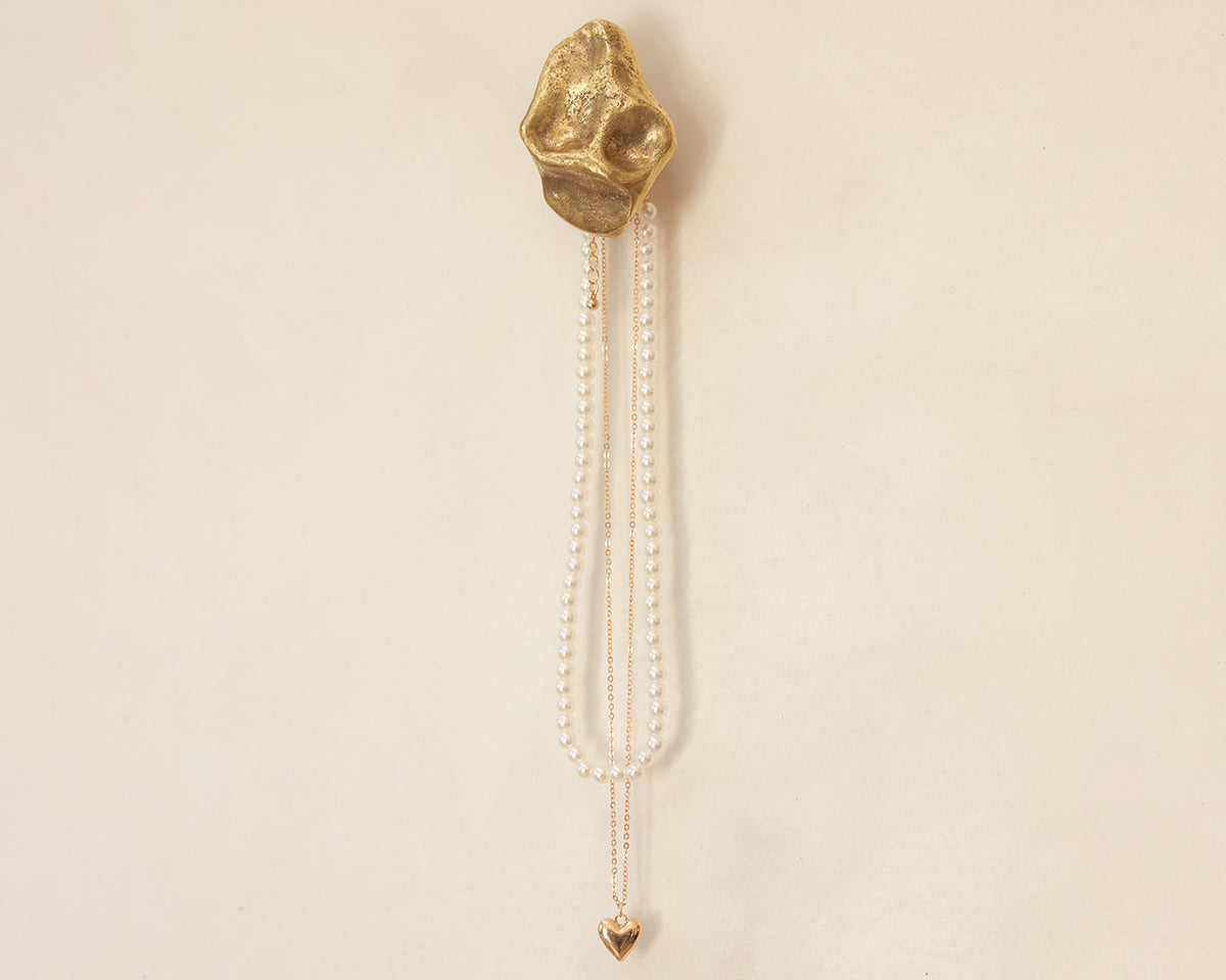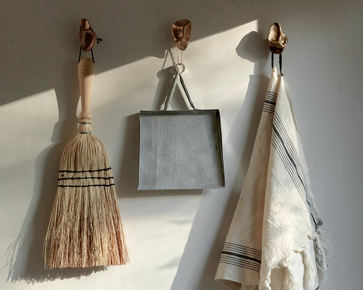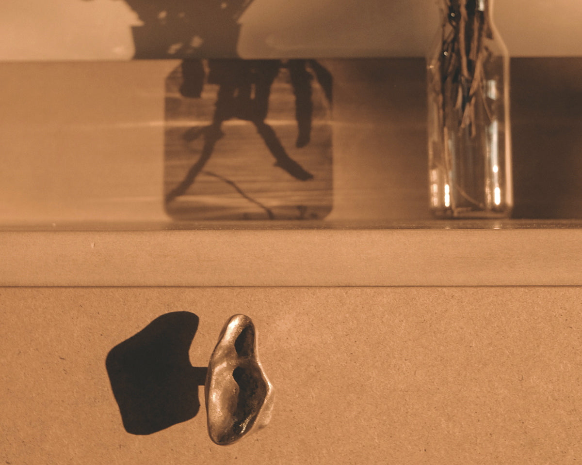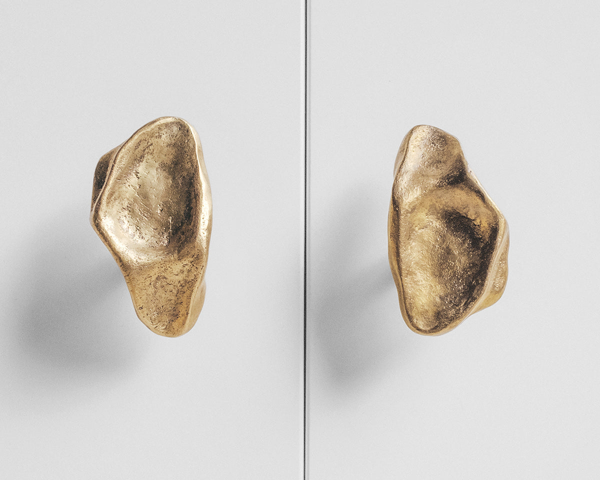 The Pinch hook/knob collection by Budapest studio Evaanna disrupts the clean lines of a modern space or furniture piece with an organic form that channels the aesthetic of mid-century sculptors like Henry Moore. Each of the collection's 6 shapes — 3 small, 3 large — has been hand-shaped in clay by architect and metalsmith Eva Ana Gulacsi, and cast by a family-run foundry in Budapest in either bronze or brass. Both materials will naturally darken and develop a patina over time. Pinch can be used either as a knob or a wall hook, and screws for both options are included with purchase.