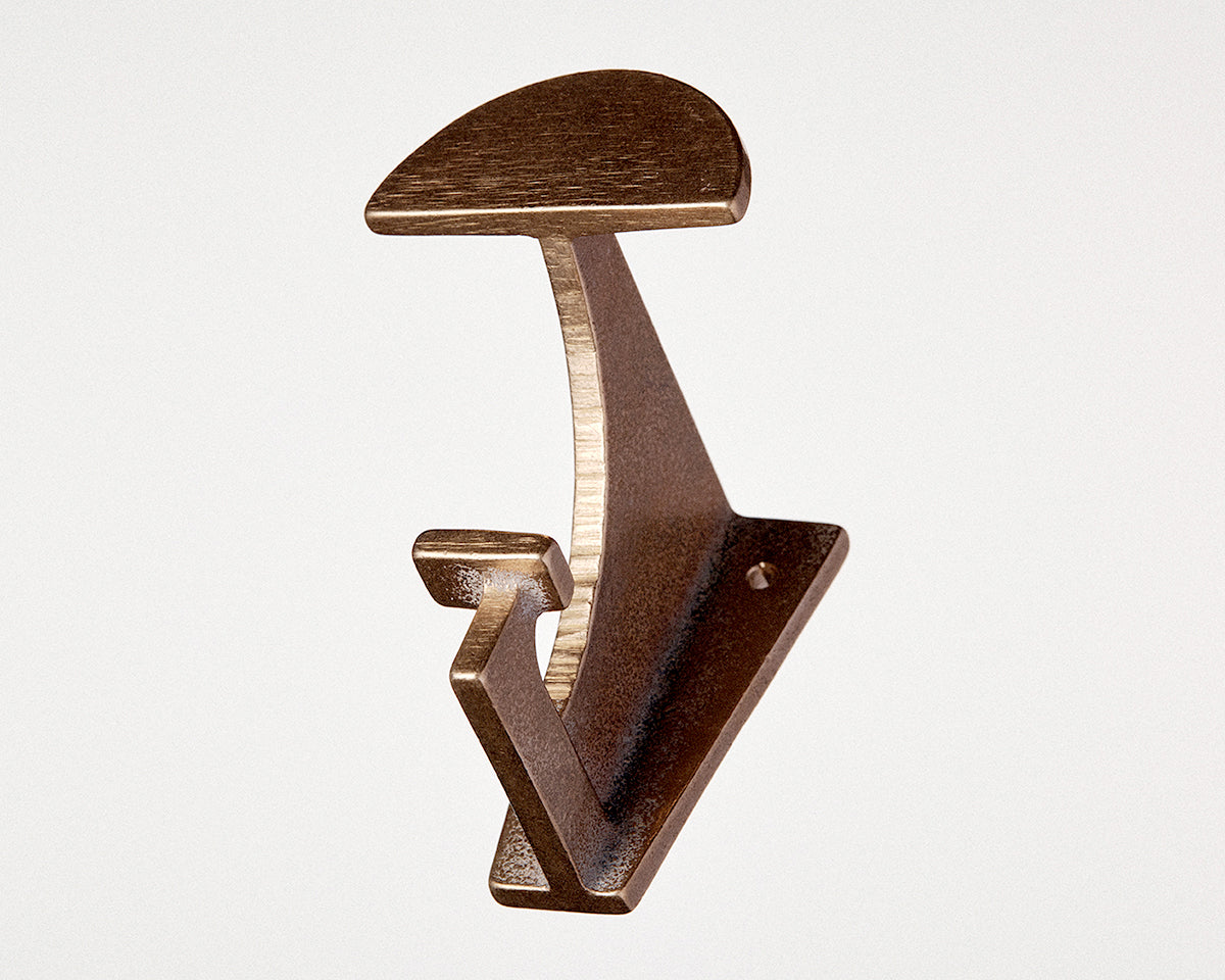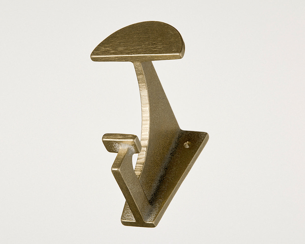 The Compass hook by Australia's Studio Henry Wilson is informed by the intersecting arcs of a compass, with two scales of hooks that can each bear substantial heft. It's made from sand-cast metal, and because manufacturing occurs in small batches, slight variations will be visible from one hook to another. These production marks may include slight pour ripples or surface pitting. The non-blackened versions will oxidize and darken over time to reveal a distinctive patina. If preferred, use a metal polish such as Brasso or Silvo to restore brightness. Delivered with adjustable screws.
