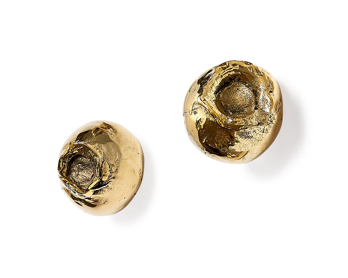 Drawing from the Roman adaptation of the ancient Greek mosaic Unswept Floor, this small knob by interior designer Sally Breer reimagines the overlooked debris of daily life as objects of permanence and reverence. Each knob is cast in solid, unlacquered polished brass in Los Angeles from a clay blueberry hand-sculpted by Breer. No two are alike — each piece bears the imprint of both hand and memory. Backplate and hardware are Included.