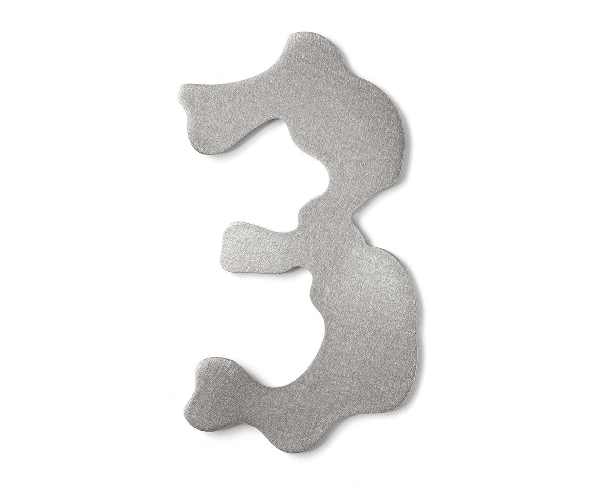 The Bob door numbers by London design studio Flawk are inspired by the wavy and welcoming movements of inflatable air dancers seen in front of car dealerships. Each number is hand-poured and cast in aluminum with a raw, organic finish. Available in numbers 1-9, they're a unique reception for any home. The numbers can be ordered with no screw holes and adhered to a door or to siding using silicone or exterior-grade epoxy, or ordered with countersunk 4mm screw holes for brick or concrete, with included M4 / 20mm long masonry screws.