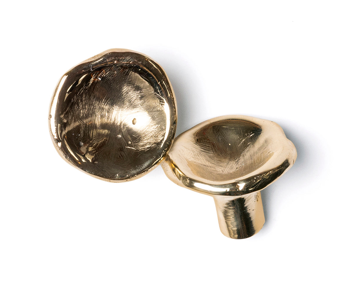 The Dimple Knob was created for Petra by artist and Block Shop co-founder Hopie Stockman Hill for her own home, and is meant to bring organic texture to the clean lines of cabinetry. Initially hand-sculpted in clay, the Dimple Knob is hand-cast in unlacquered brass at an L.A. foundry. Every piece is 100% unique and may have irregularities or imperfections. Unlacquered brass will patina with time, but can be restored to its original shine with a polish such as Brasso.
