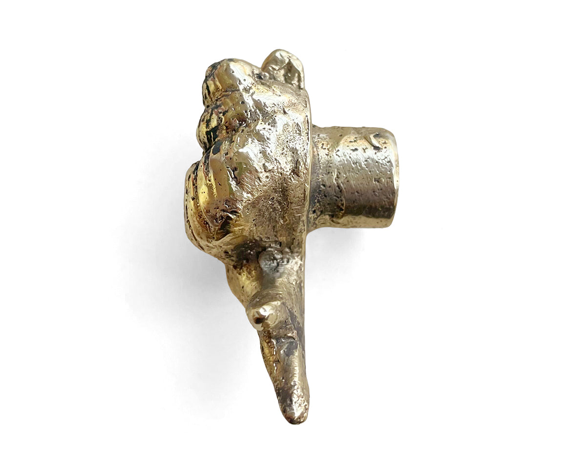 The Snail Knob was created for Petra by artist and Block Shop co-founder Hopie Stockman Hill, and inspired by the famous giant snail from the 1967 film Dr. Doolittle as well as the Taschen Book of Symbols, where the snail is described as a metaphor for resilience, slow and steady progress, and adaptation. Initially hand-sculpted in clay, the Snail Knob is hand-cast in unlacquered brass at an L.A. foundry and comes in both a left-facing and a right-facing orientation, each with a slightly different sizing. Every piece is 100% unique and may have irregularities or imperfections. Unlacquered brass will patina with time, but can be restored to its original shine with a polish such as Brasso.